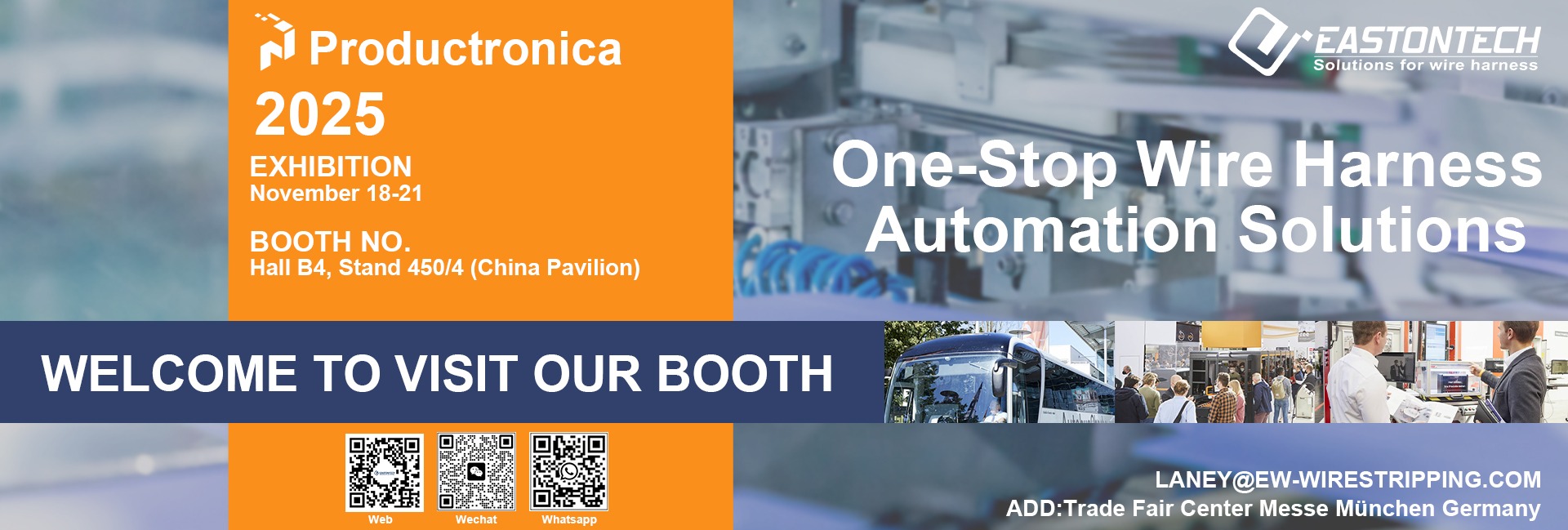 EASTONTECH has become one of the leading brands in the industry for wire harnessing machinery. Automation is the future of manufacturing! Our goal is to automize your production flow and increase efficiency. We have successfully served customers spanning a broad range of industries, including: automotive, information and communications technology, industrial and consumer electronics and appliances, aerospace and defense, railway and transportation, medical technology.